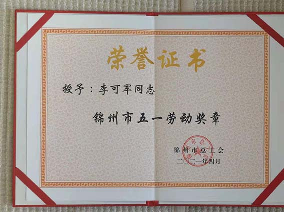 日,李可軍董事長榮獲“錦州市五一勞動獎章”榮譽稱號。